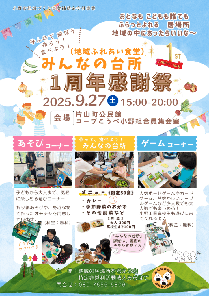 ✨「みんなの台所」1周年記念イベントのお知らせ✨ 地域の皆さまに支えていただき、「みんなの台所」は今年9月で1周年を迎えます。これまで温かい応援とご参加をいただき、心より感謝申し上げます。 このたび、日頃の感謝を込めて、 […]