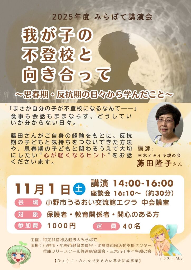 「まさか、自分の子が不登校になるなんて…」思春期の壁にぶつかったとき、どう寄り添えばいいのか分からず悩んだ経験はありませんか? 今回の講演会では、ご自身の子どもが不登校を経験した藤田さんが、当時の戸惑いや気持ち、そして少 […]